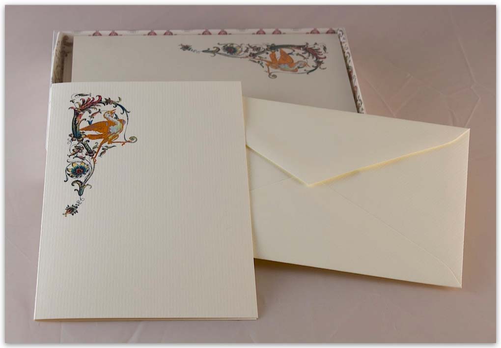 Biglietti a libro di carta Fedrigoni con decorazione uccello policromo oro a caldo