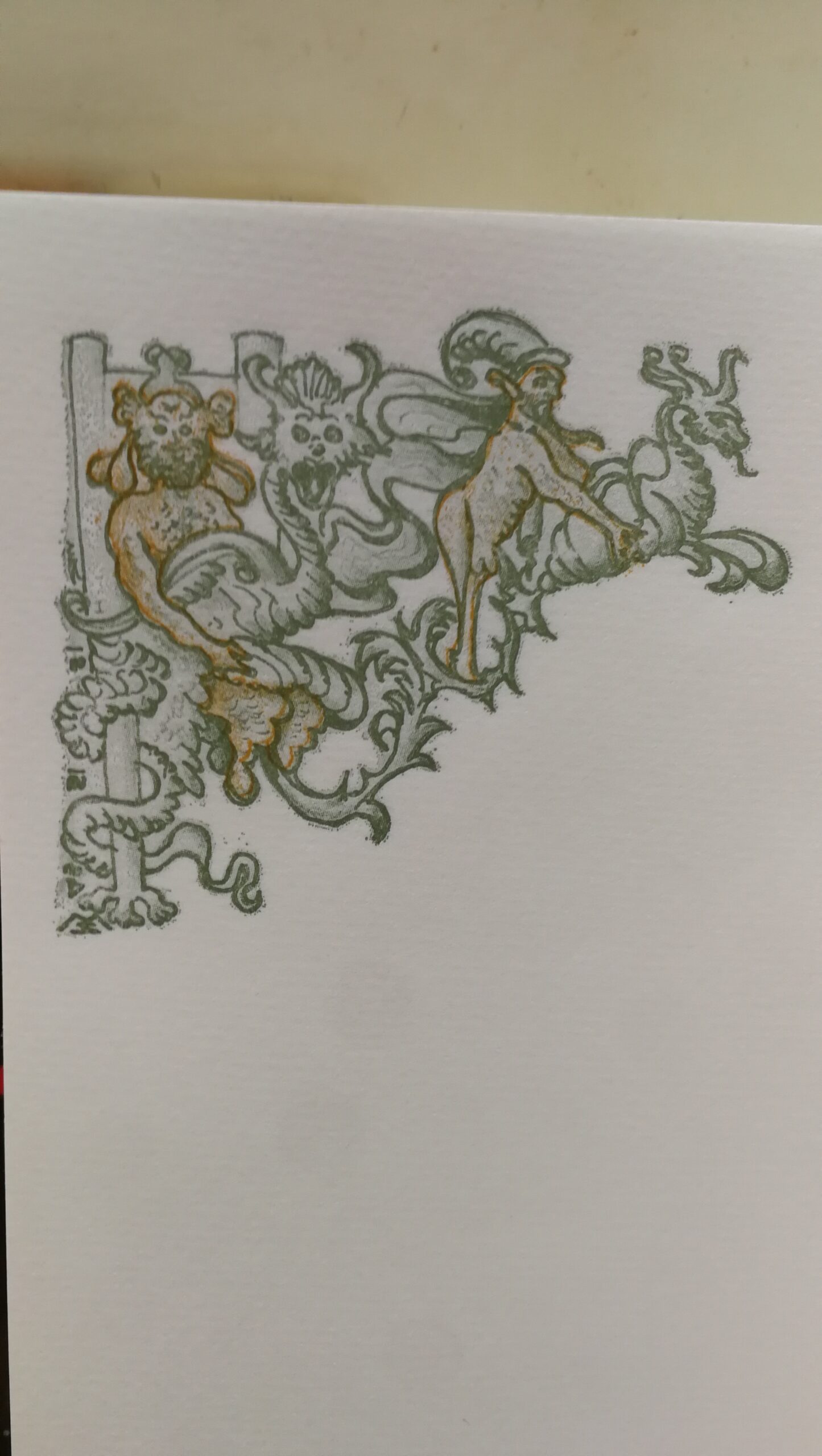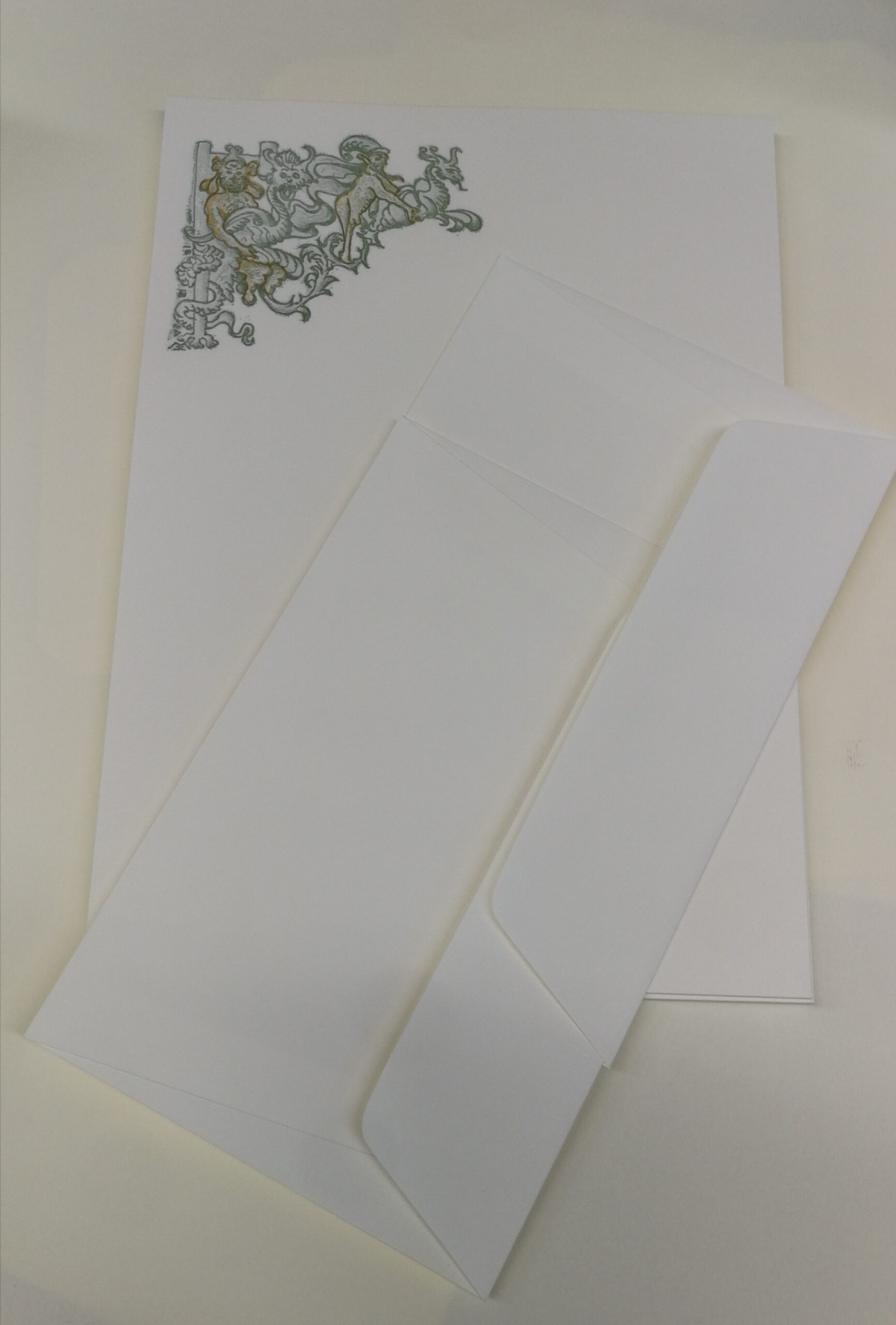 Carta da lettere, formato 17,5x24cm, carta serie Rusticus Fabriano decorazione Allegoria