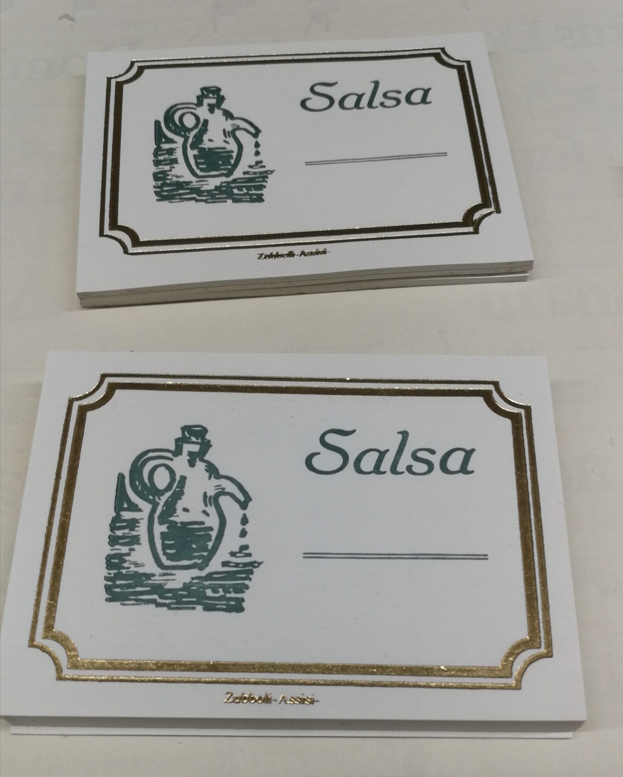 Etichette per barattoli e/0 bottiglie di Salsa in carta adesiva. Le etichette vengono stampate artigianalmente su carta Fedrigoni di pregiata qualità.