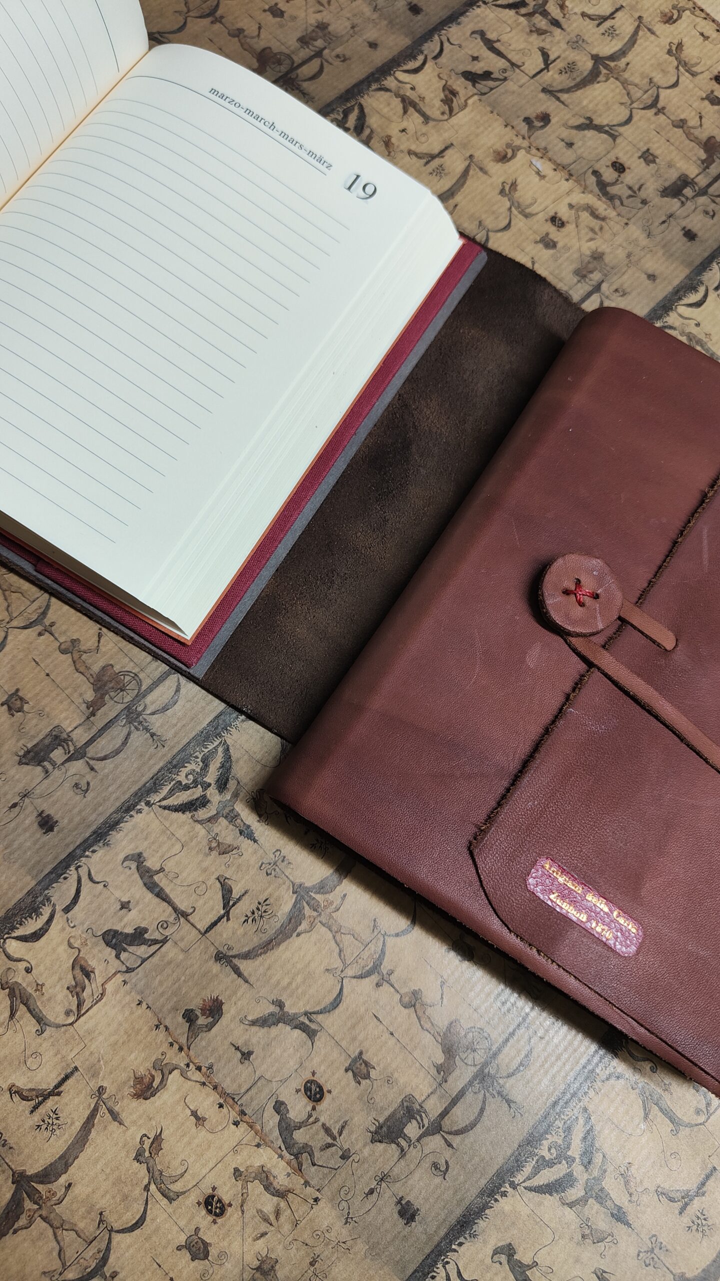 Agenda giornaliera/perpetua in pelle con copertina estraibile – diary one day for page – utilizzabile senza alcun anno specifico , può essere iniziata in qualsiasi momento.