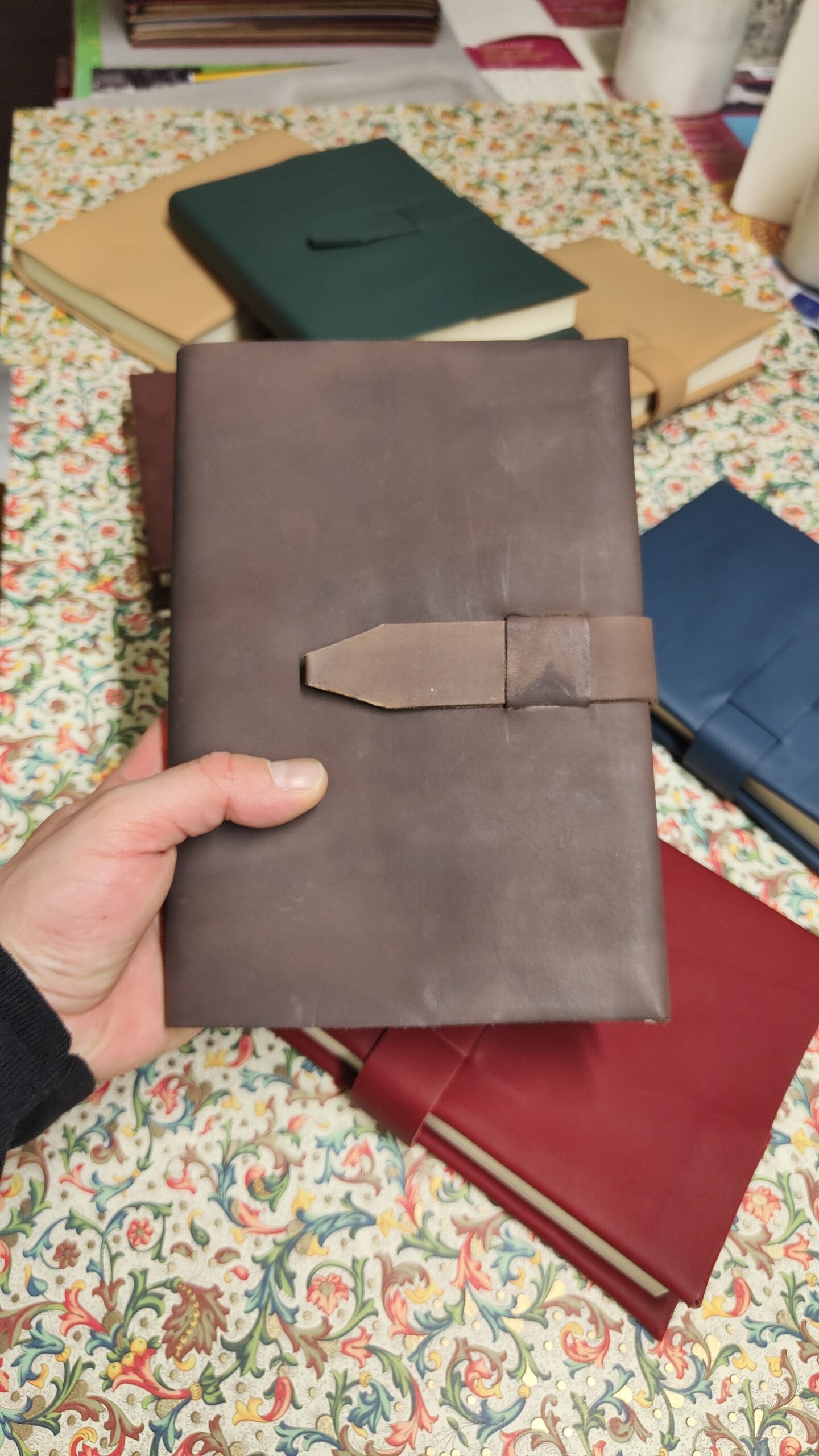 La pelle del quaderno può essere scelta tra tinte di vari colori : Rosso, Nero, Marrone , Naturale , Verde e Blu Avio ; si prega cortesemente di specificare nella compilazione del form al momento dell’ordine il colore della tinta per realizzare il quaderno estraibile ; vi è anche la possibilità di incidere in oro a caldo le Iniziali o il proprio Nome come personalizzazione speciale….magari per un regalo.